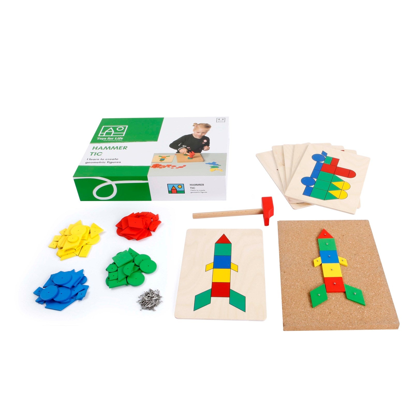 Giocando con il gioco educativo Hammer Tic di Toys for Life, i bambini imparano a riconoscere le forme, i colori e a disegnare figure geometriche, migliorando al contempo le loro capacità motorie fini.