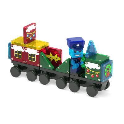 Contenuto: 34 MAGNA-TILES® natalizi, tra cui Babbo Natale, macchinista, 10 microMAGS decorati, 3 triangoli stampati e un microChassis.