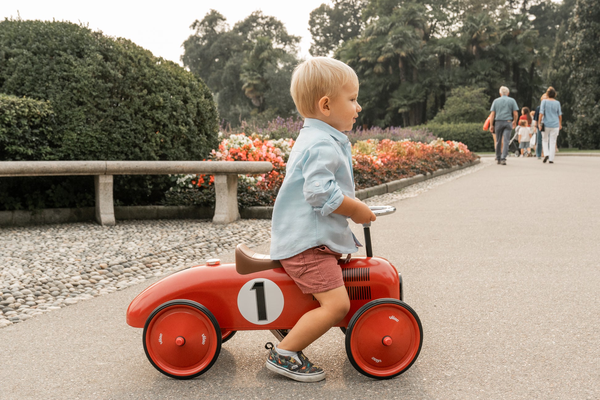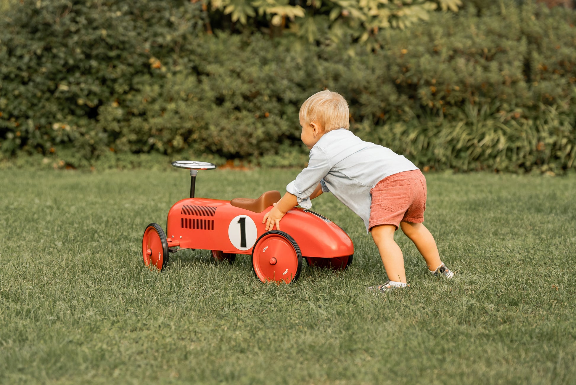 Piccoli piloti, a bordo! Questa splendida macchina cavalcabile per bambini, realizzata in metallo, permette di muoversi in piena sicurezza e imparare a coordinare i movimenti, il tutto con uno stile vintage davvero esclusivo. Le ruote gommate garantiscono massima silenziosità e la seduta prevede due possibili soluzioni.