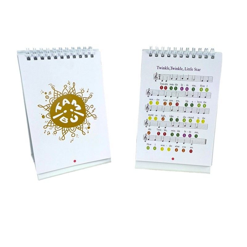 Ci sono in totale 11 note, ognuna con il proprio colore. Sono inclusi una pratica borsa per il trasporto e un libro di spartiti che utilizza sia numeri che colori.